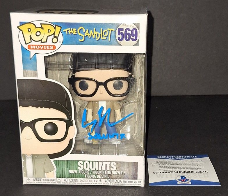 Signed in blue paint on a The Sandlot Squints Funko with "Squints" inscription. Beckett Witness authenticated. Will come with the hologram and matching card. Will come in a pop protector. Please see my other items. Will ship secure within one business day. Please message with any questions thank you! Memorabilia