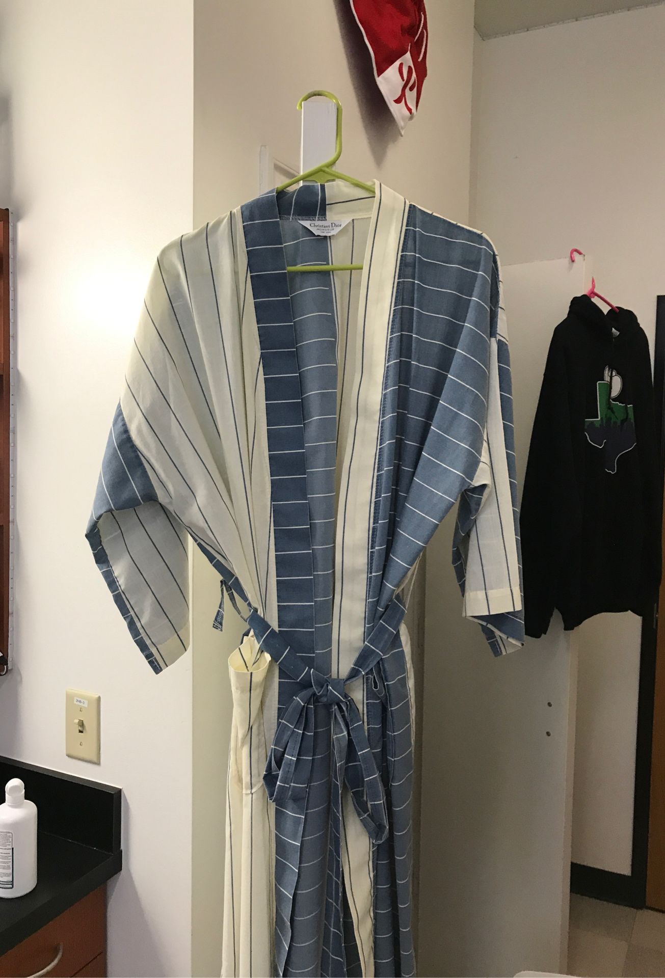 Men’s bath robe Found at antique shop Don’t use anymore, decent condition, one belt loop is ripped but there’s two in the same spot so it works just fine