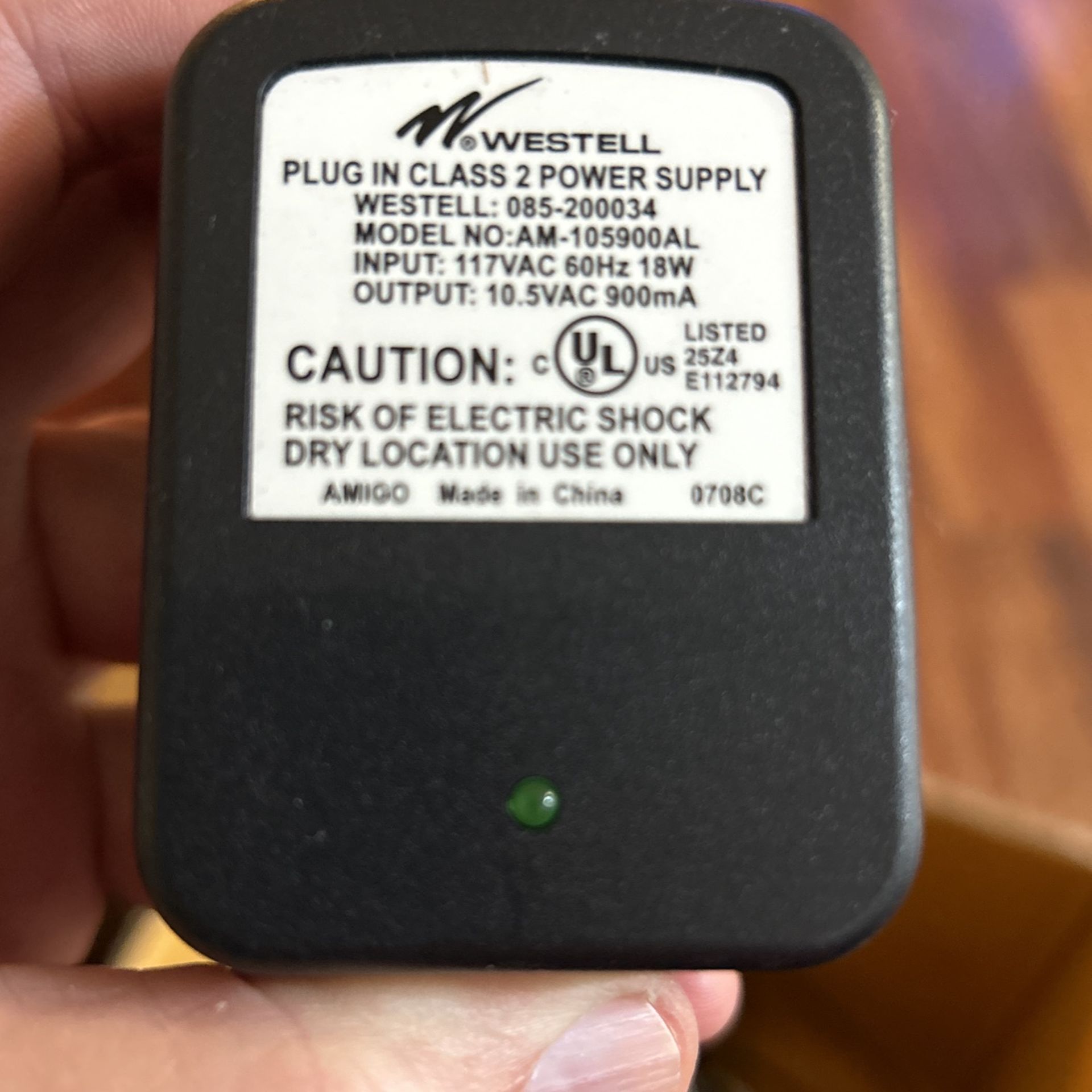 Input. 117vac 60 hz 18 w Output 10.5 vac 900 ma