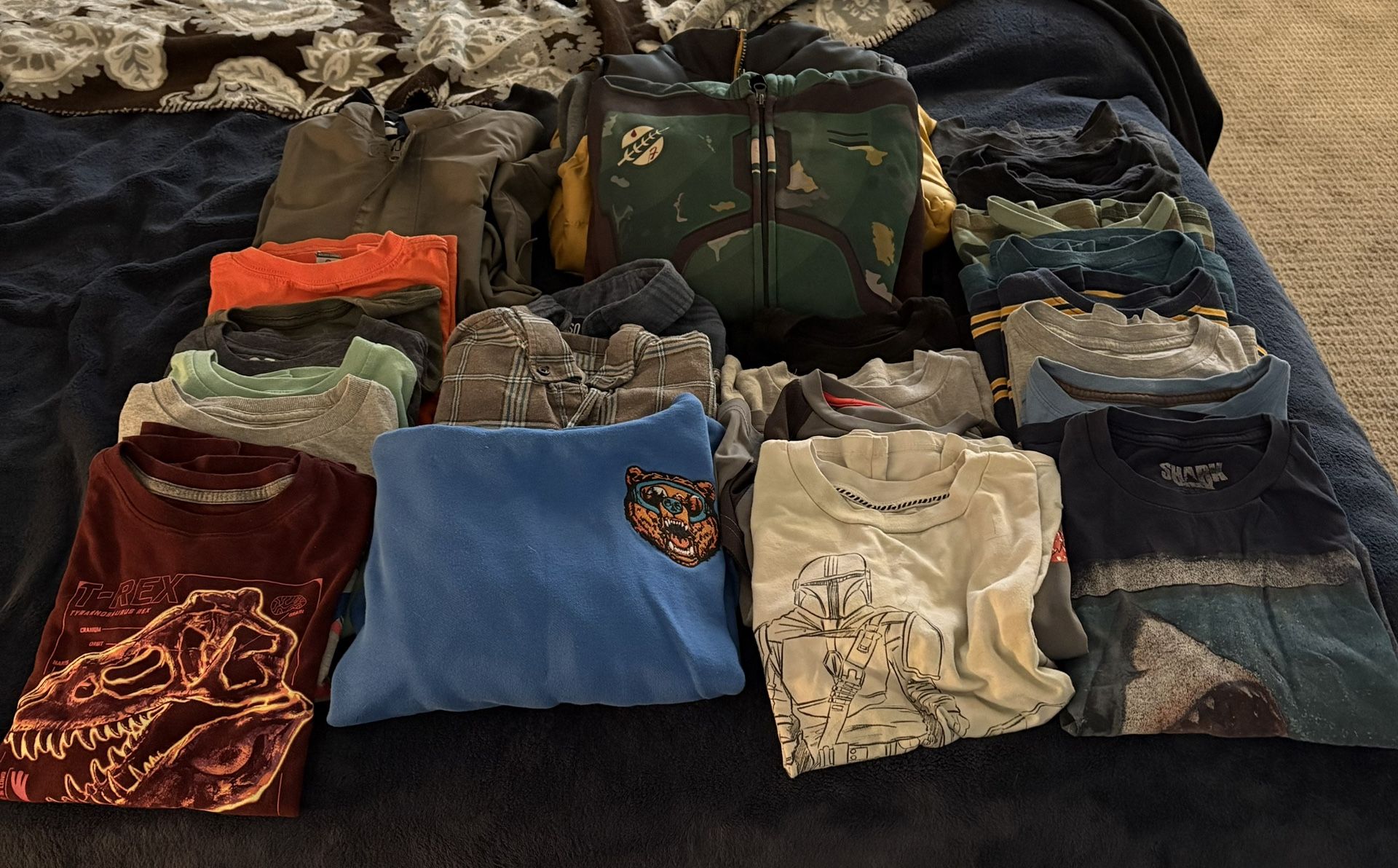 Boys tops gently used. Sizes 8 - 12. A mix of jackets, flannels, sweatshirts, mostly tees. Over 20 items