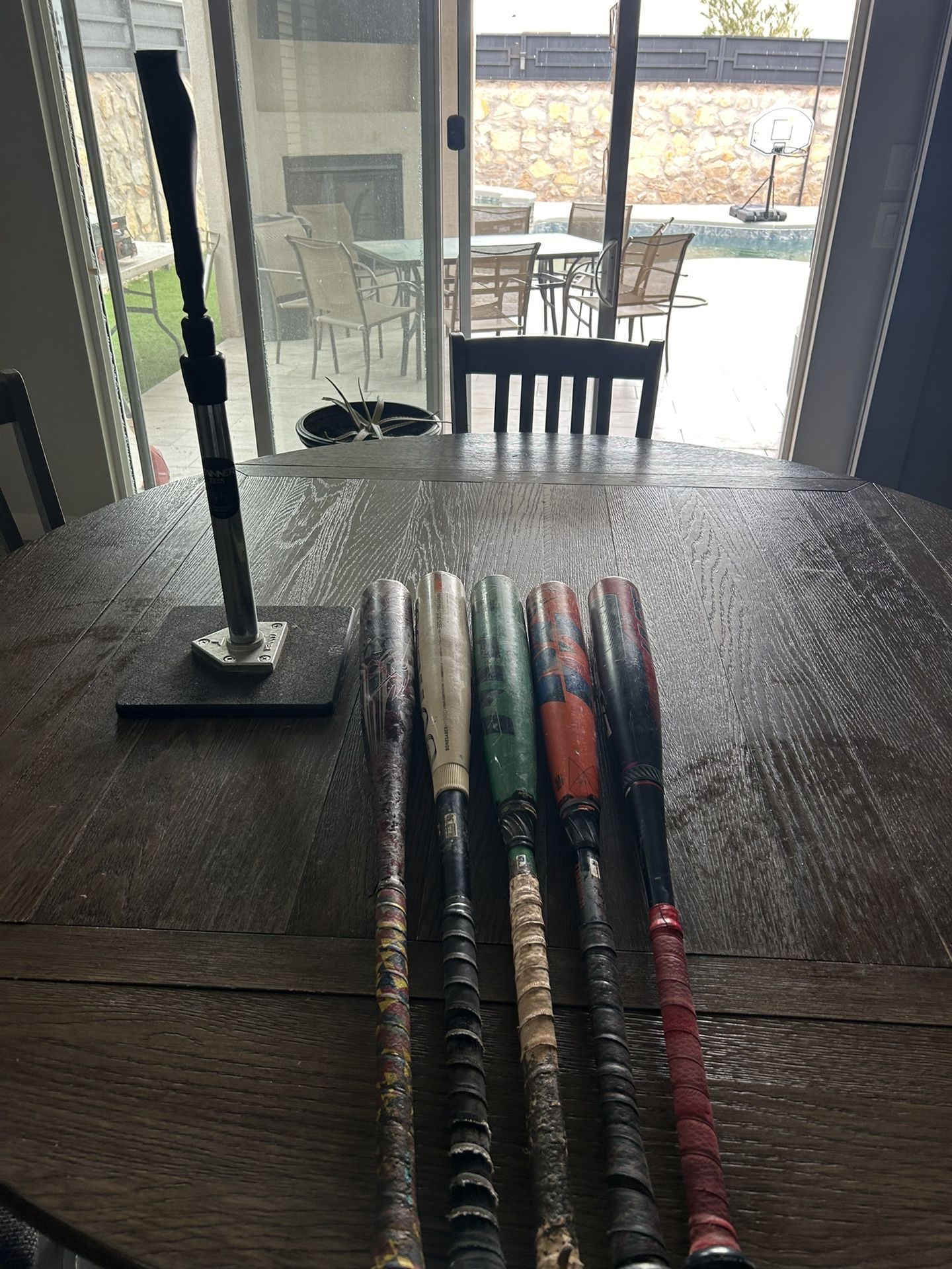 2022 Demarini Voodoo one -3 33 in, warstick Bonesaber hybrid -3 33.5 in, 2023 green Meta -3 33 in, 2022 orange meta -3 32 in, Easton Adv Hype -5 32 in