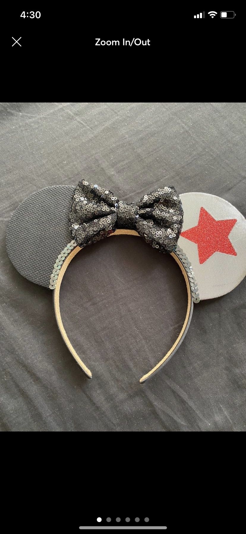 Black and Gray marvel Bucky Barnes/winter solider Disney Minnie ears. Has one small scratch in the ear with the red star but very sturdy and comfortable