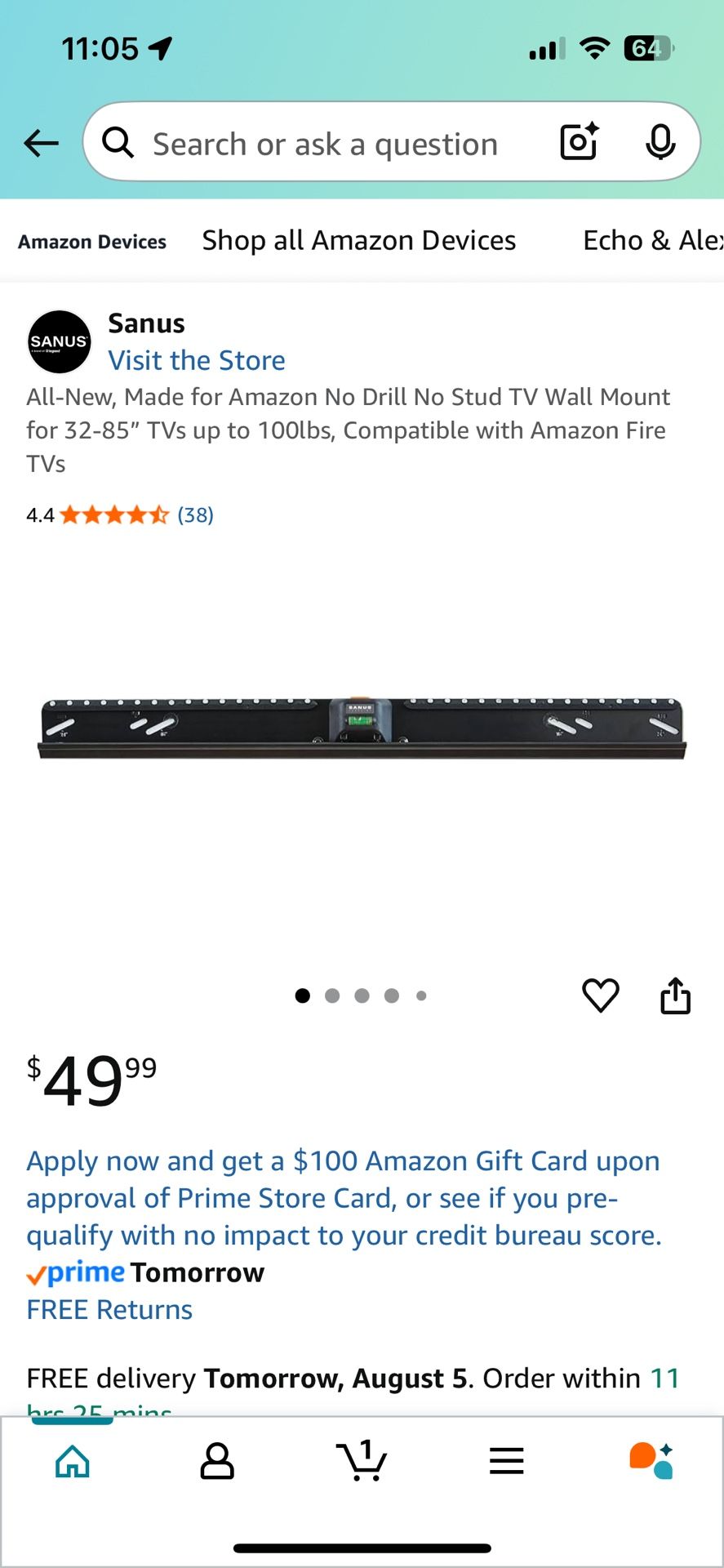 Brand new Sanus brand no drill no stud up to 85” , 100lbs TV Wall Mount. Still in original box Amazon return. Comes with everything needed. Originally $50 asking $25. Can ship anywhere nationwide or meet if local to Shawnee area. X posted! If still posted then it’s still available!