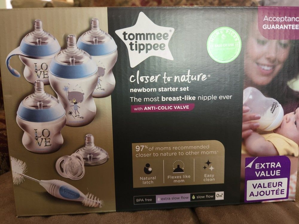 Anti-colic bottle pack, extra slow flow 2- 5oz bottles 2- 9oz bottles 1- slow flow nipple 1- pacifier 1- removable bottle handle 1- bottle & nipple brush Unopened