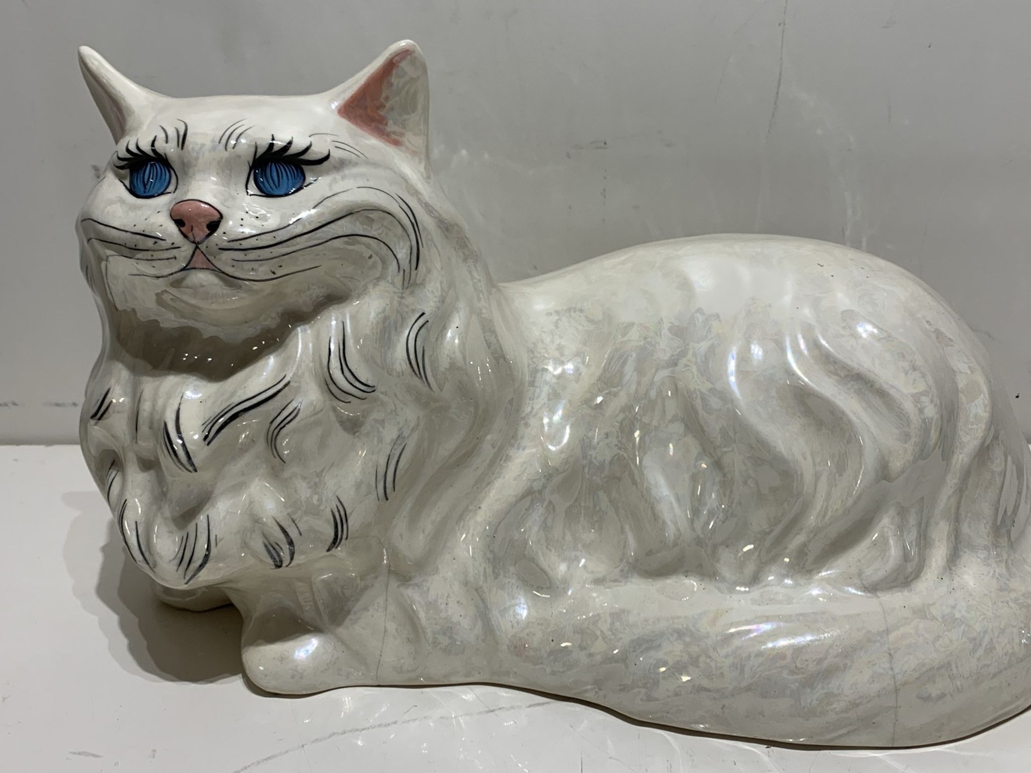Vintage Porcelain Ceramic Iridescent White Persian Cat Retro