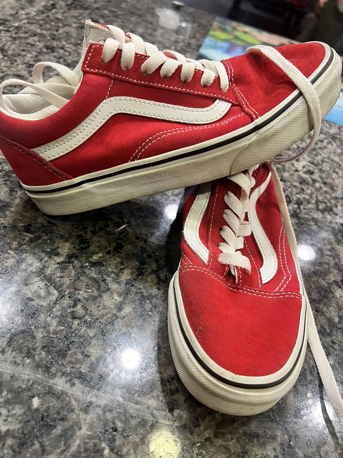 Size 4.5 white vans only used twice, $15 Size 4 red vans only used twice $15 Size 3Y teal and white brand new Nike. Never used. $25 Size 3 red and black adidas. Brand new never used $25 Size 4Y black Jordan's only used a couple of times $30