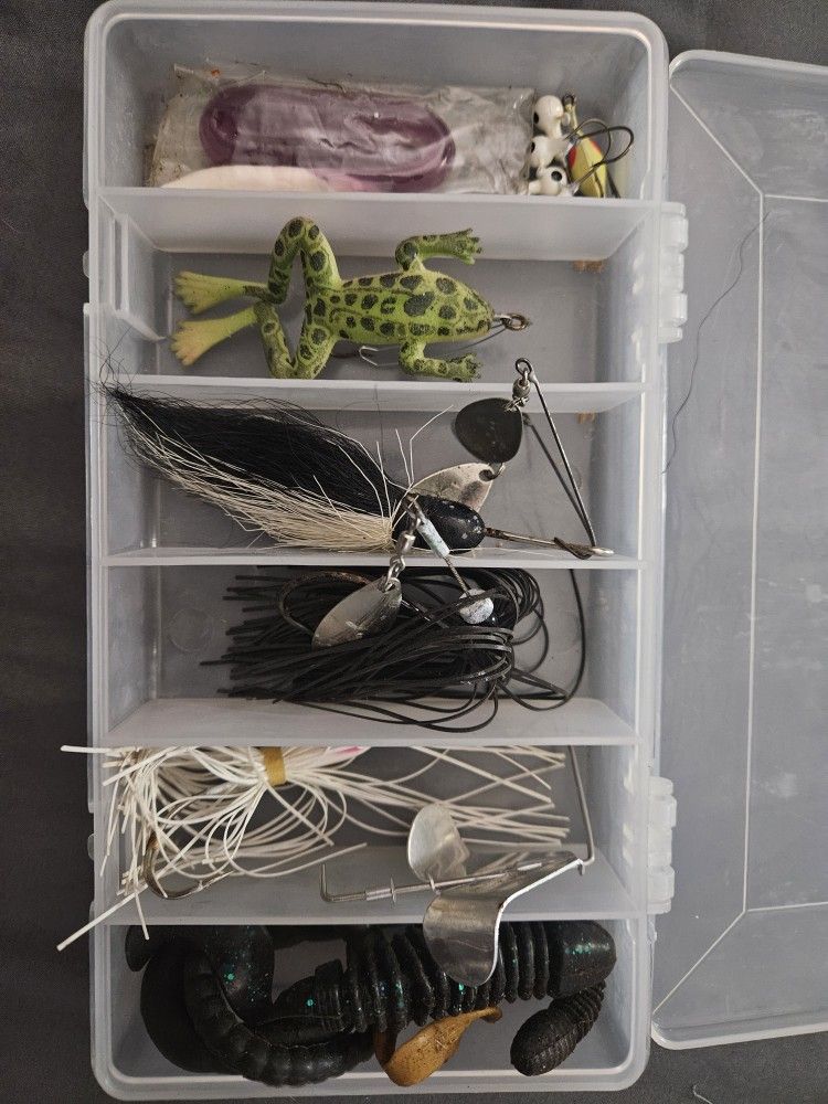 Comes as pictured, with a variety of buzzbaits worms frog spinnerbait spinnerjig jigheads etc etc. Discount if buying both I have listed.