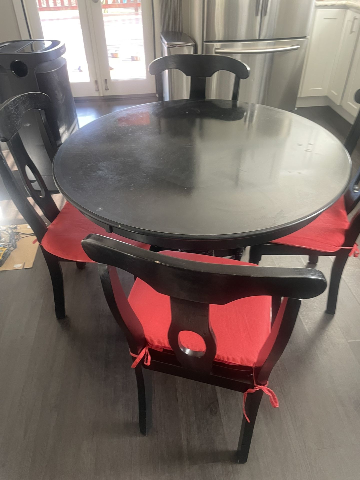 Color: Black Amount Of Chairs: 4 Includes red Cushions