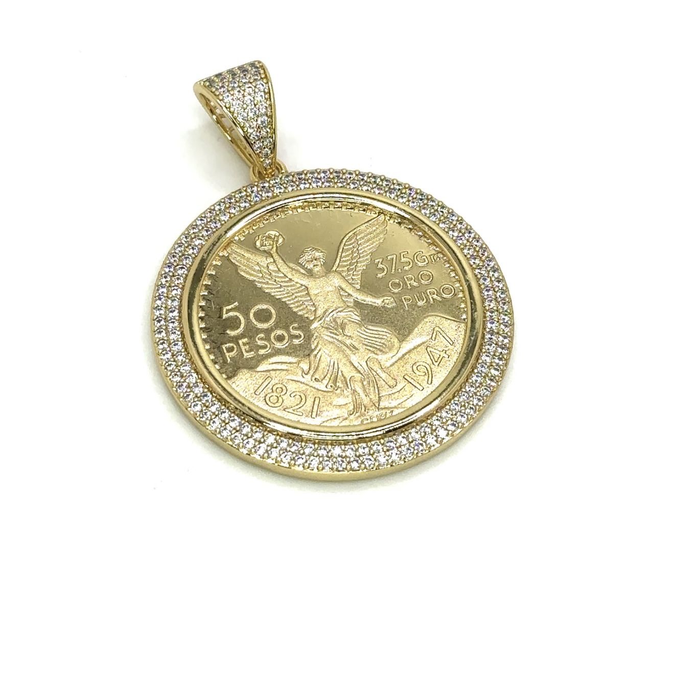 50 Pesos Moneda Mexican Centenario Custom Year" Pendant 14k Yellow Gold Plated