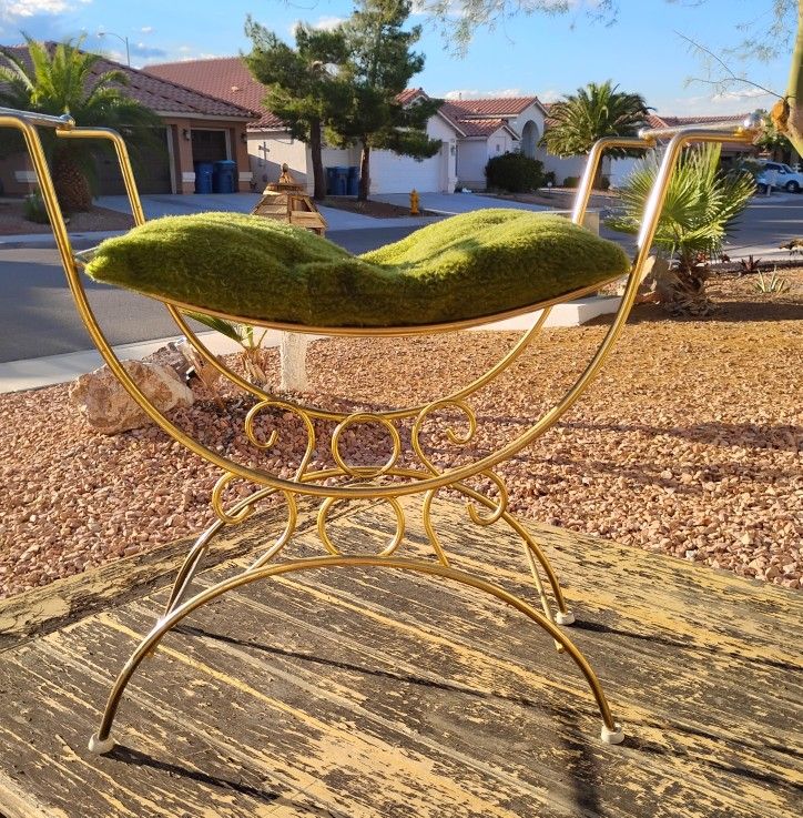Vintage Hollywood Regency vanity bench seat, with original cushion. Local delivery can be arranged