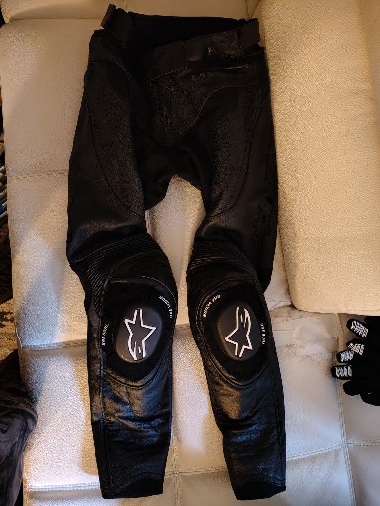 They don't fit me and I've never really worn them except trying them on, Size 30 USA. They come with a zipper to connect to the waste if you buy a track jacket. Willing to negotiate price