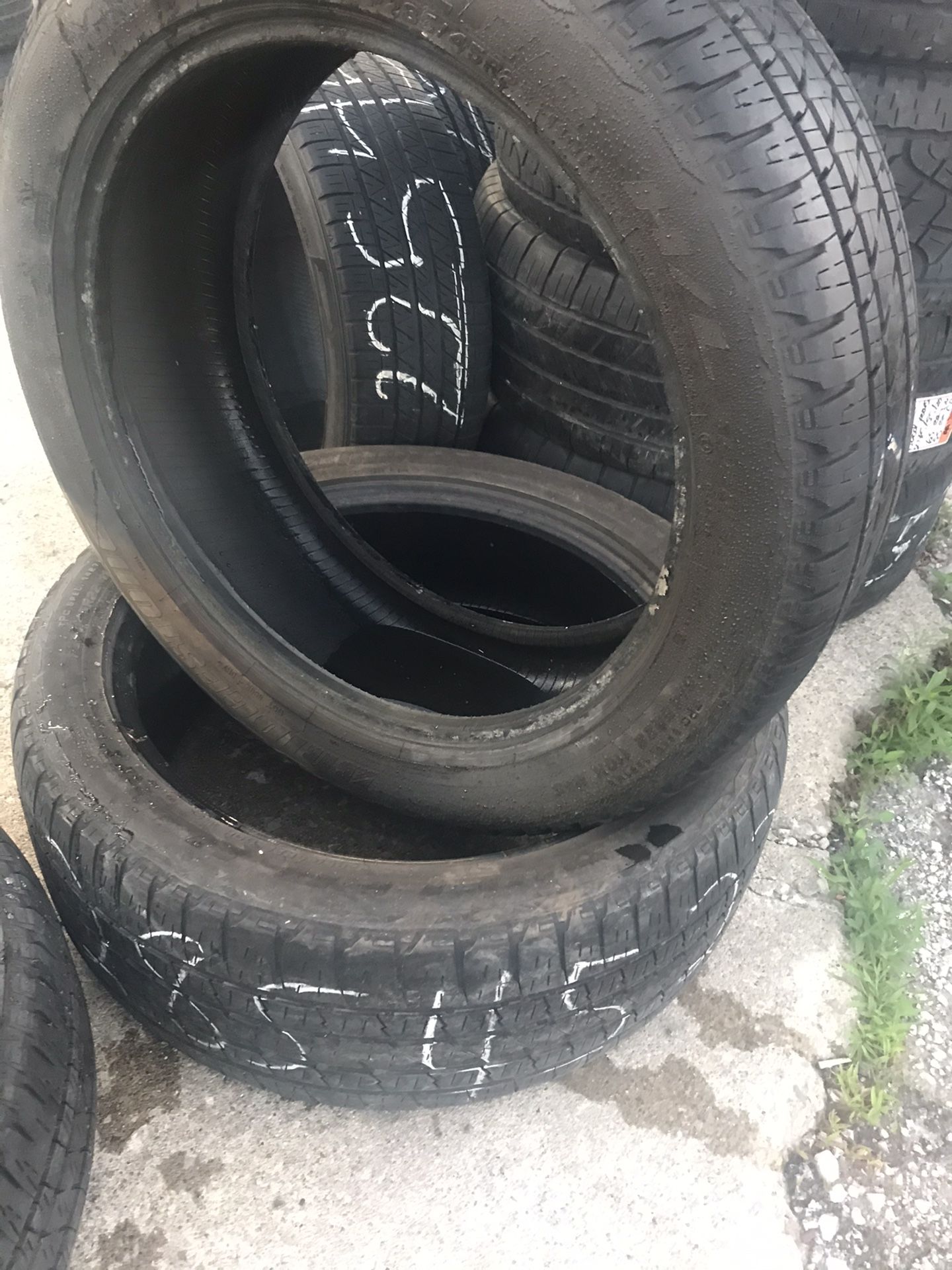 Pair Used great tread left didn’t see any patches 285/45-22 pair $200 for both cash carry plus tax extra for install New and used tires Free bottle water while you wait Coffee and coke coming Dads Tire and Lube New location Now Open 1009 North main St Cloverdale Indiana 70 and 231 exit 41 off 70 Open 7 days a week Two bays and Techs are waiting Tire Repair Rotation Oil change $39.99 full synthetic $59.99 up to 5 qts Brakes Struts Upper control arm Ball joints Calipers Water pump Alternators Belts Plugs wires Other mechanic works also.