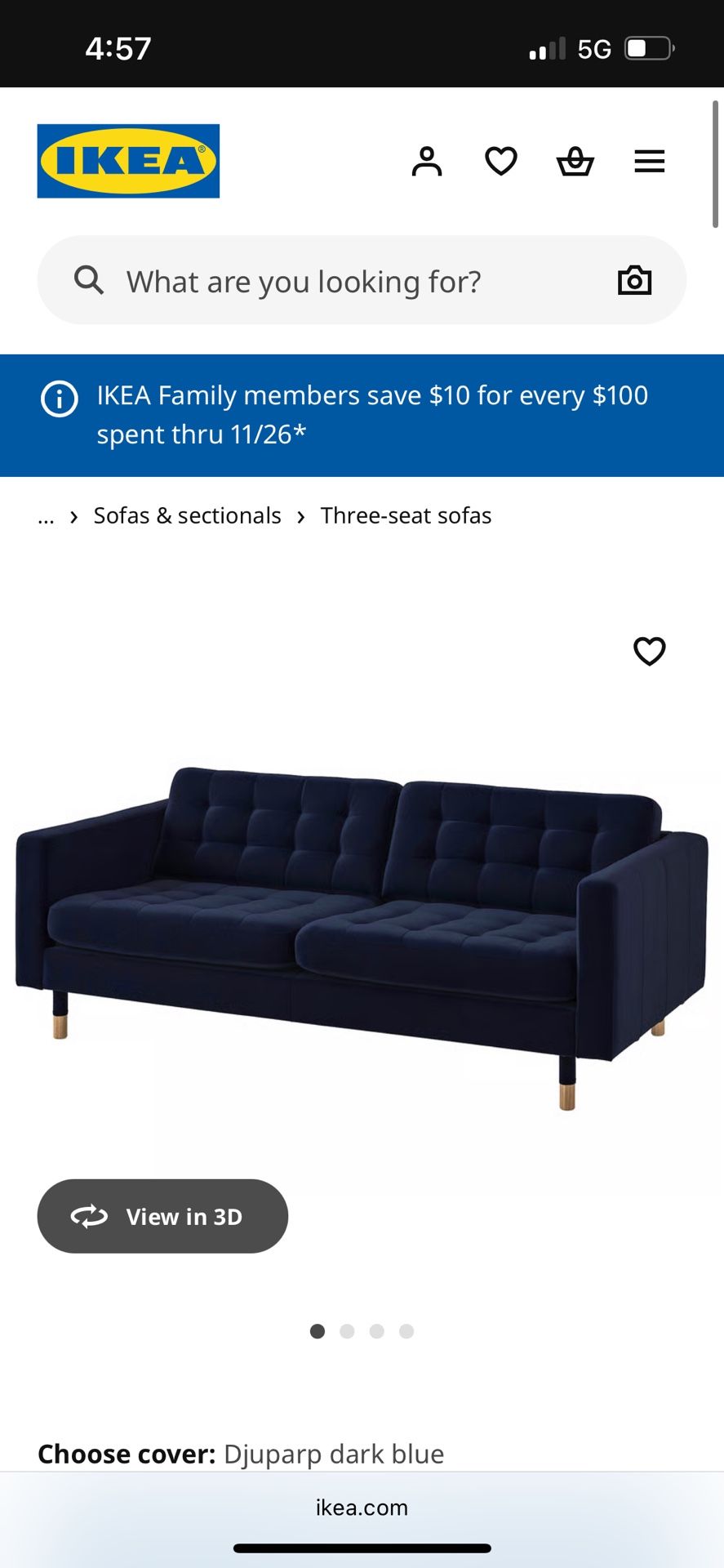 Good condition ikea sofa for sale. Retails $899. Cushions completely unzip so they can be washed and will be good as new. Pick up only