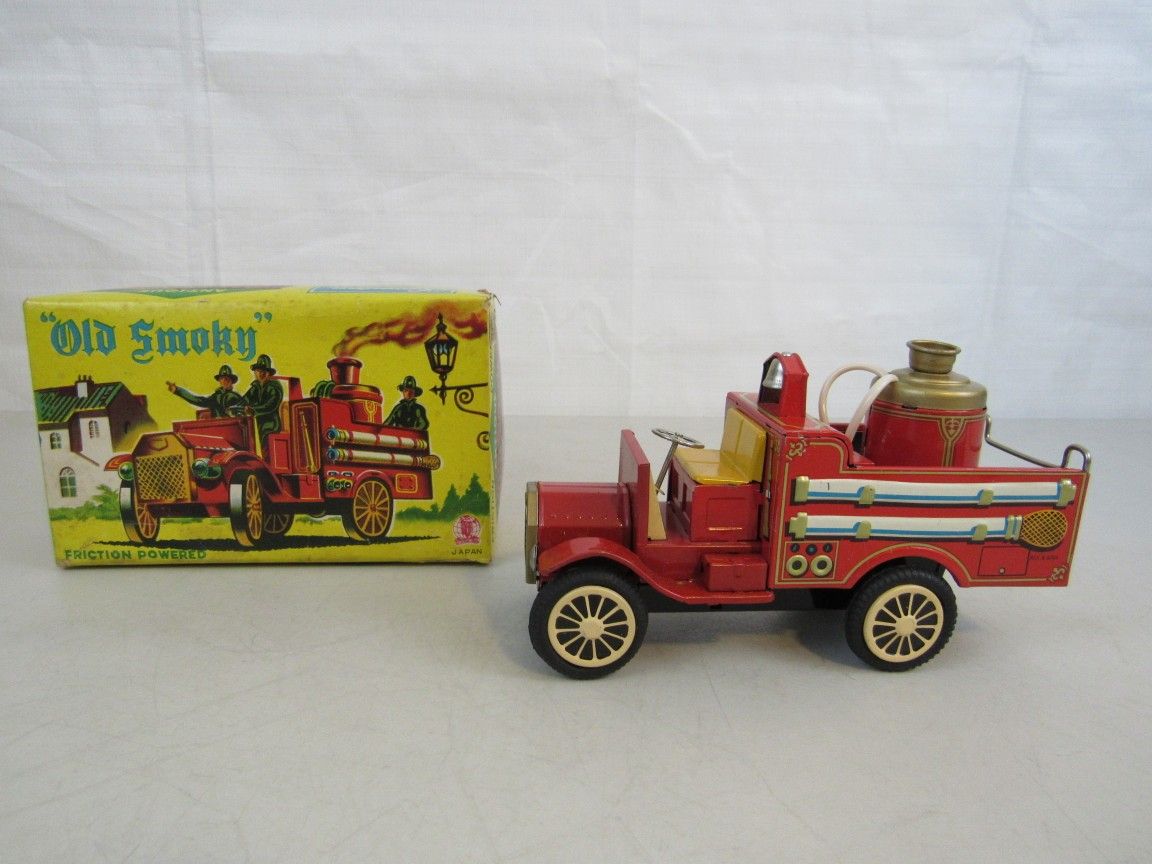 Vtg. 1950's? Cragstan "Antique Old Smoky" Friction Tin Toy Firetruck