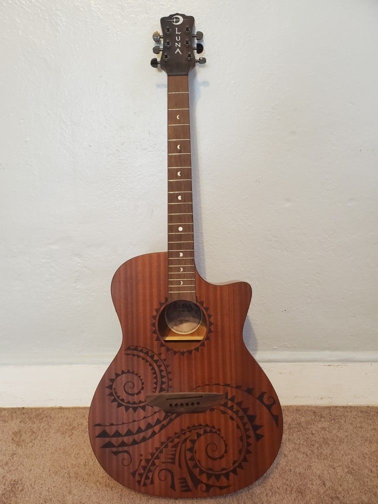 Luna Gypsy Tattoo Mahogany Acoustic-Electric Grand Concert Guitar Satin Natural