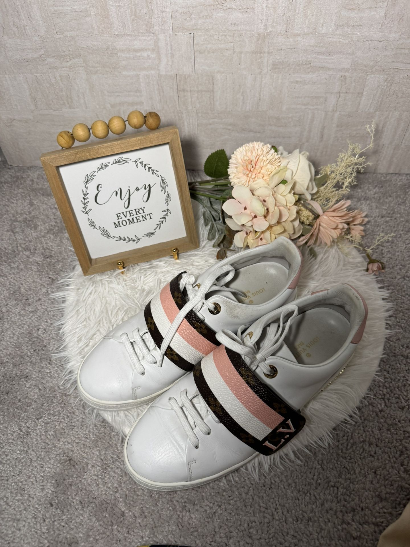 💯 Authentic. Datecode: MS 0138 Size 38 about 8 in US but can fit on 8.5 Womens. Comes with original dustbags. Flaws: Normal Wear and tear. scratches, dirt, rubbings, paint scratches are all shown on the photos. Needs some cleaning. Bottom soles are a little bit worn out by the heel area as shown on the photos. Shoelaces have stains as shown on the photos.