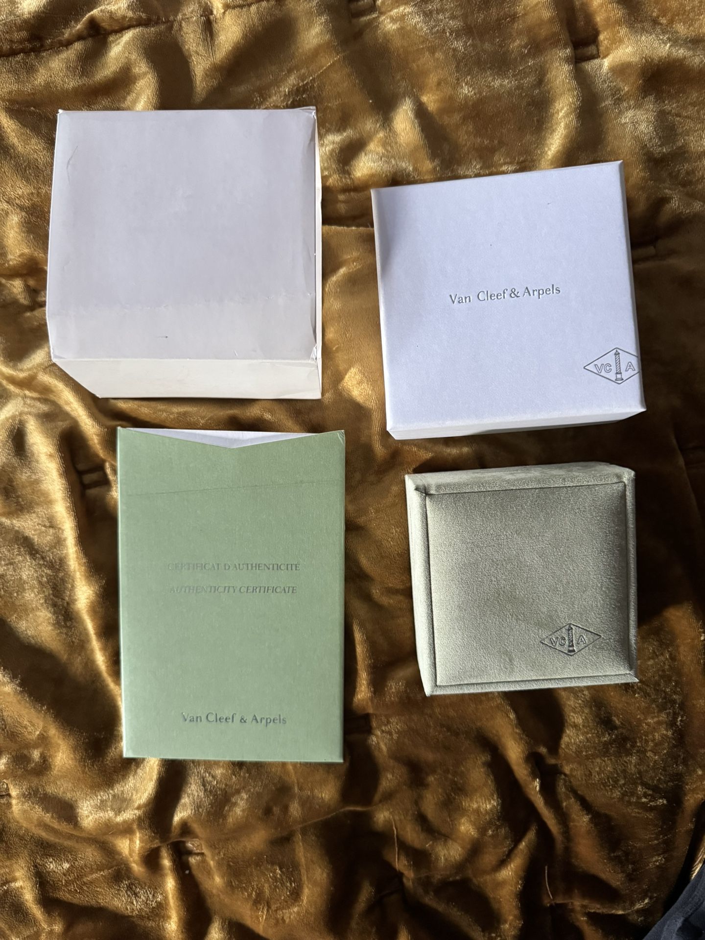 Wonderful used box for VCA Van Cleef & Arpels earrings. I will also include the bag, but it’s a bit tattered and stained.