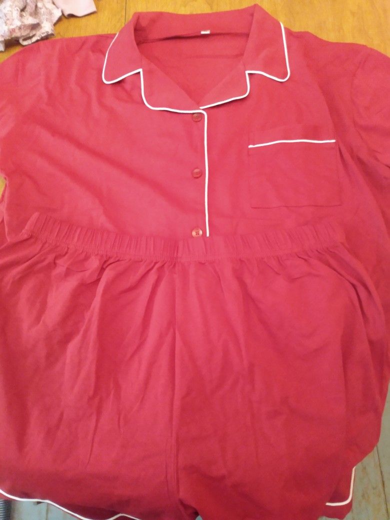 A brand new short sleeve and shorts set, XL in size and burgundy in color