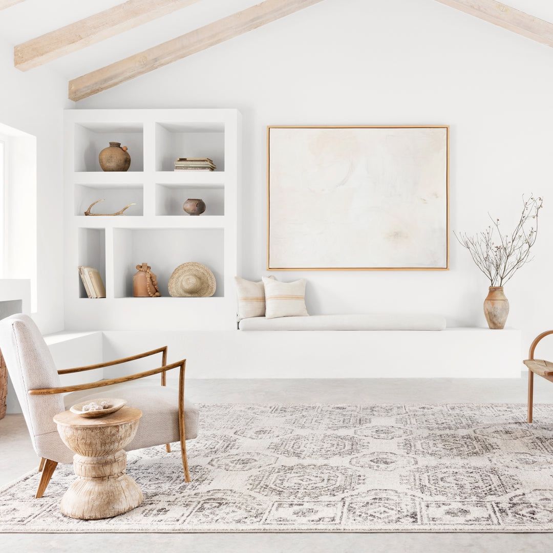 7 ft. 10 in. x 7 ft. 10 in. JOAQJOA-03IVCC7A0R Joaquin Traditional Power-Loomed Round Rug& #44; Ivory & Charcoal