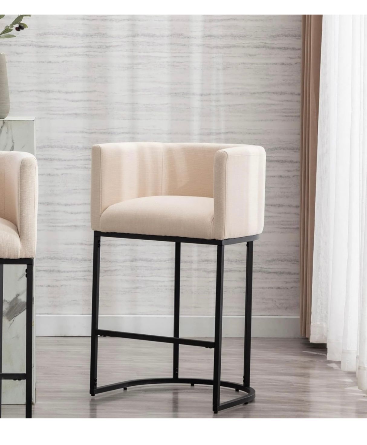 Contemporary Cream Linen Bar Stool, 29" Upholstered Fabric Counter Height Barstool Kitchen Counter Island Stool with Black Metal BaseV021