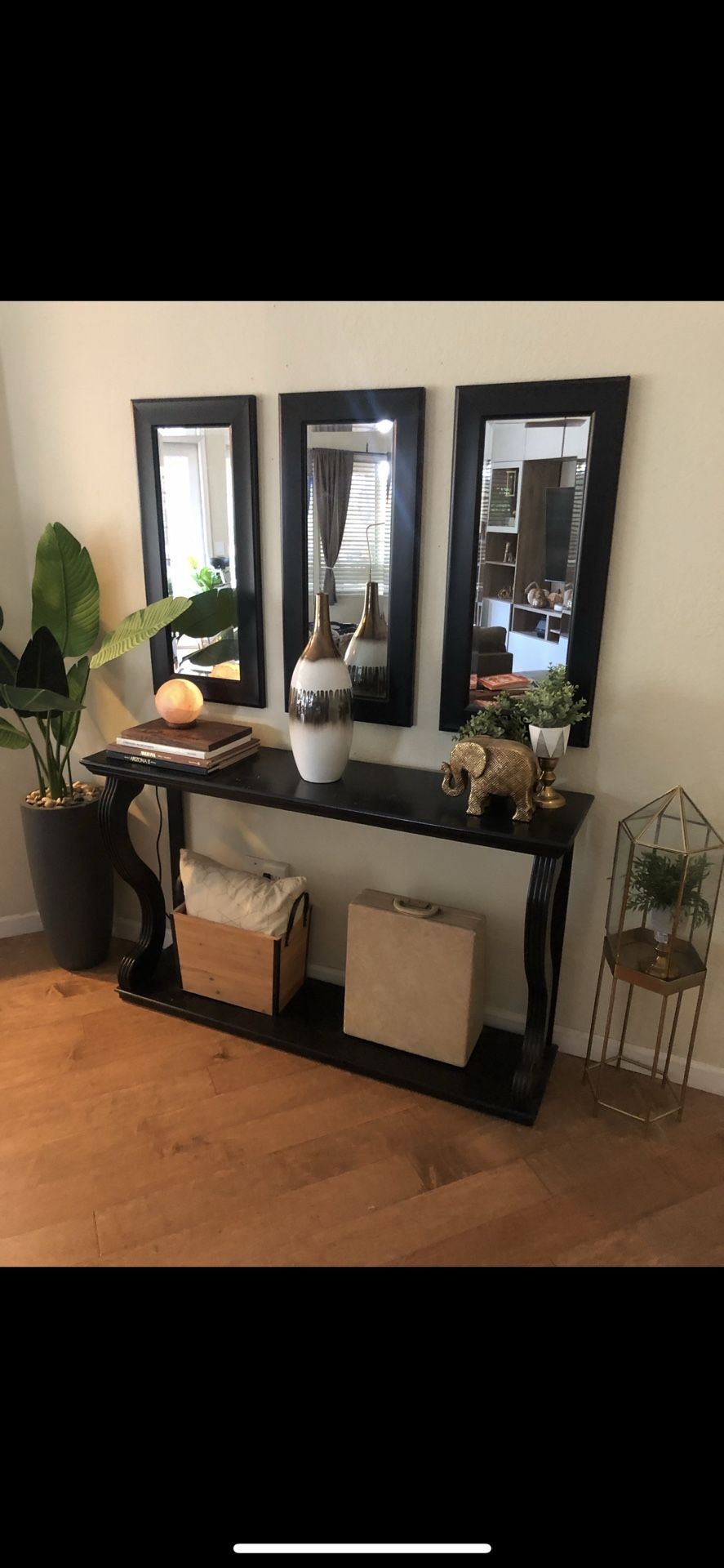 Has marks/scratches some from wear over the years. Most decor will cover it Perfect for any entryway or a sofa table Double shelf Just selling the black table Measures 55" long by 32.5" tall and 15" deep Pick up only Located 44th st and Thunderbird Near PV mall