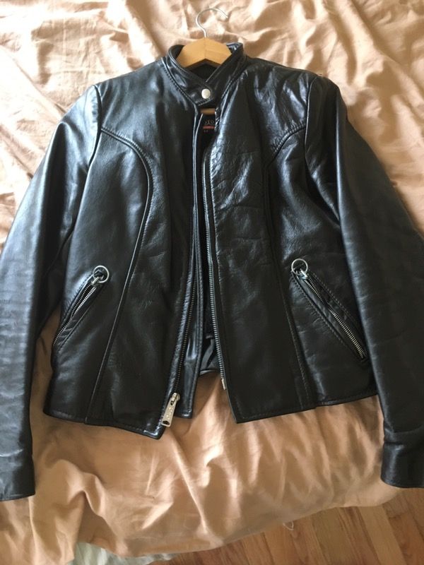 Size 34 black leather jacket in excellent condition. Has zip outlining Ladies jacket Great Christmas gift Great Christmas gift