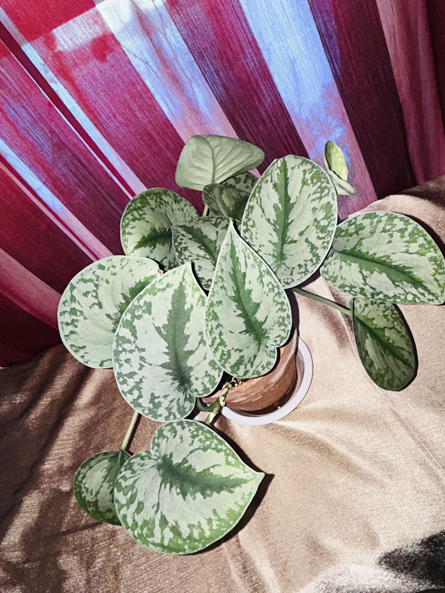 'Silvery Ann', also known as Silver Satin Pothos, is a popular, easy-care houseplant with velvety, heart-shaped leaves featuring distinct silvery splashes and edges, making it ideal for hanging baskets or climbing. Care involves bright, indirect light (avoid direct sun), letting the topsoil dry between waterings (like once a week), and providing moderate to high humidity to maintain its beautiful variegation and soft texture. Its native range is the tropical rainforests of Southeast Asia, specifically areas like Bangladesh, Malaysia, Indonesia (Borneo, Java, Sumatra), the Philippines, and Thailand, where it grows as a climbing or trailing vine in the forest understory. Please take a look at my page for more offers. Thank you!