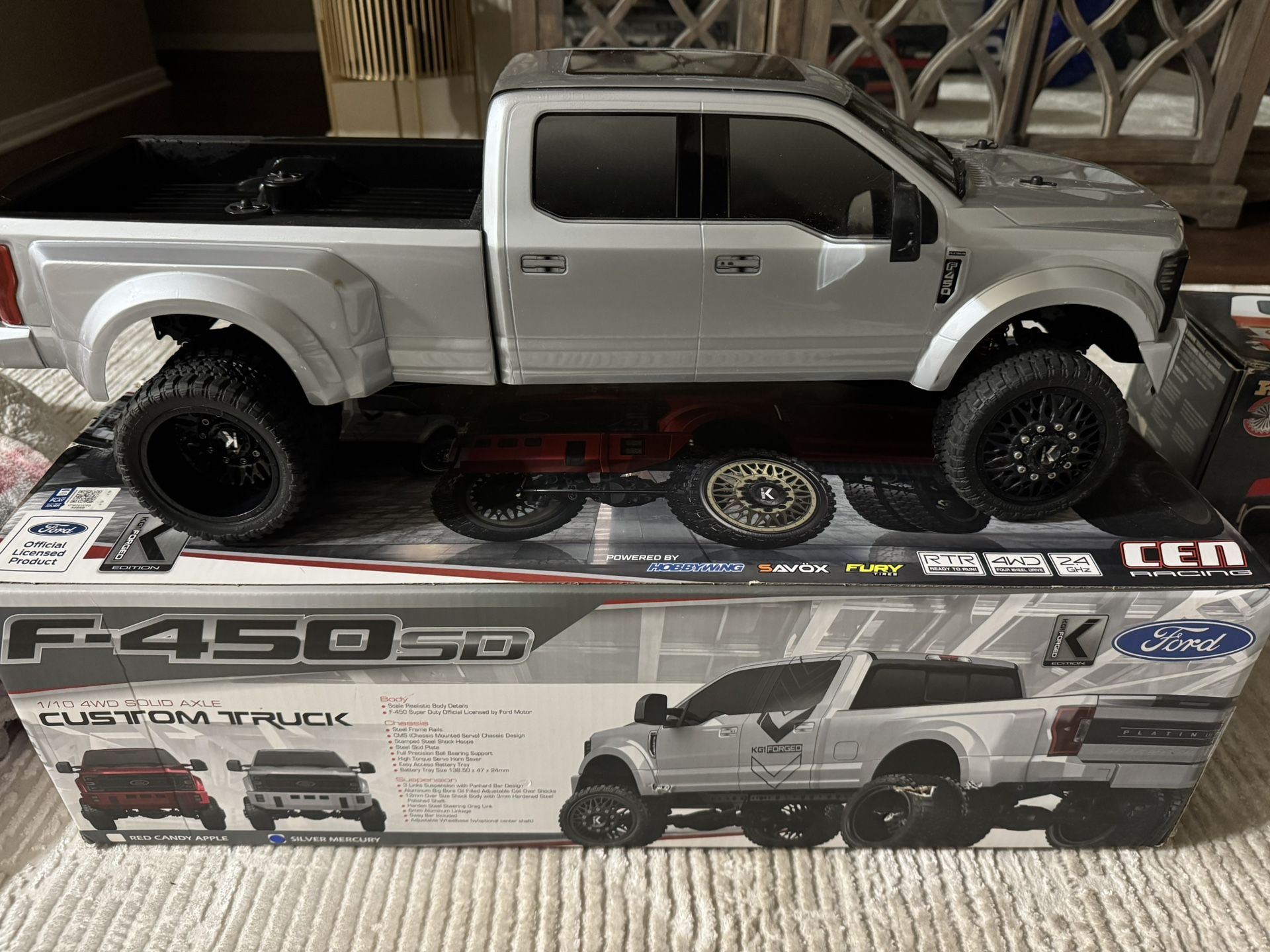 CEN F450 platinum Edition Hard to find silver Brand new king shocks never opened Custom remote Custom spike lugs never opened