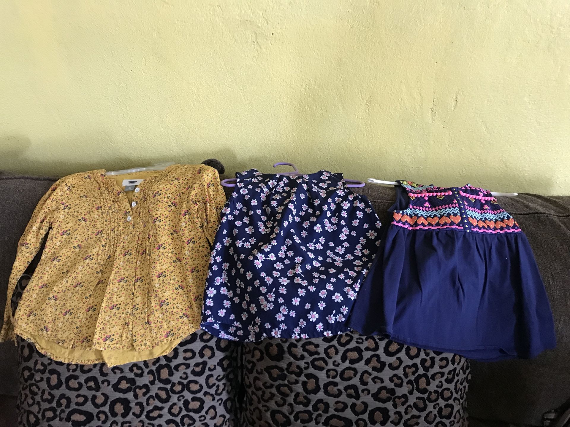 Shirts in great condition yellow and flowered shirt 4t and blue one size 5t pick up only asking $10 for all 3