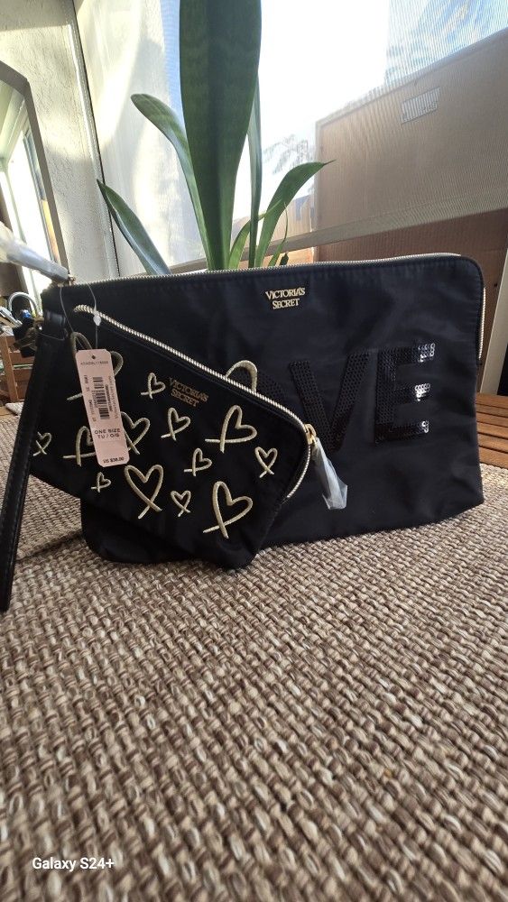 Victoria Secret Love Pouches. One small & one large Black with gold hearts Condition Excellent Pouch multiple uses Great gift Pickup up LB Cash only