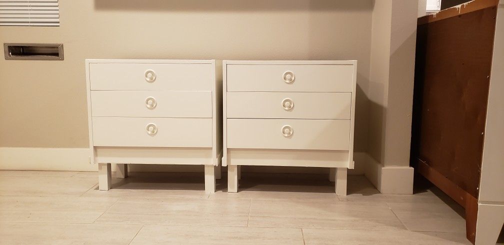 Matching pair of 3 drawer night stands. Freshly painted and the drawers all work properly. 23.5W 13D 25H. Cross streets are Hayden and Chaparral in Scottsdale.
