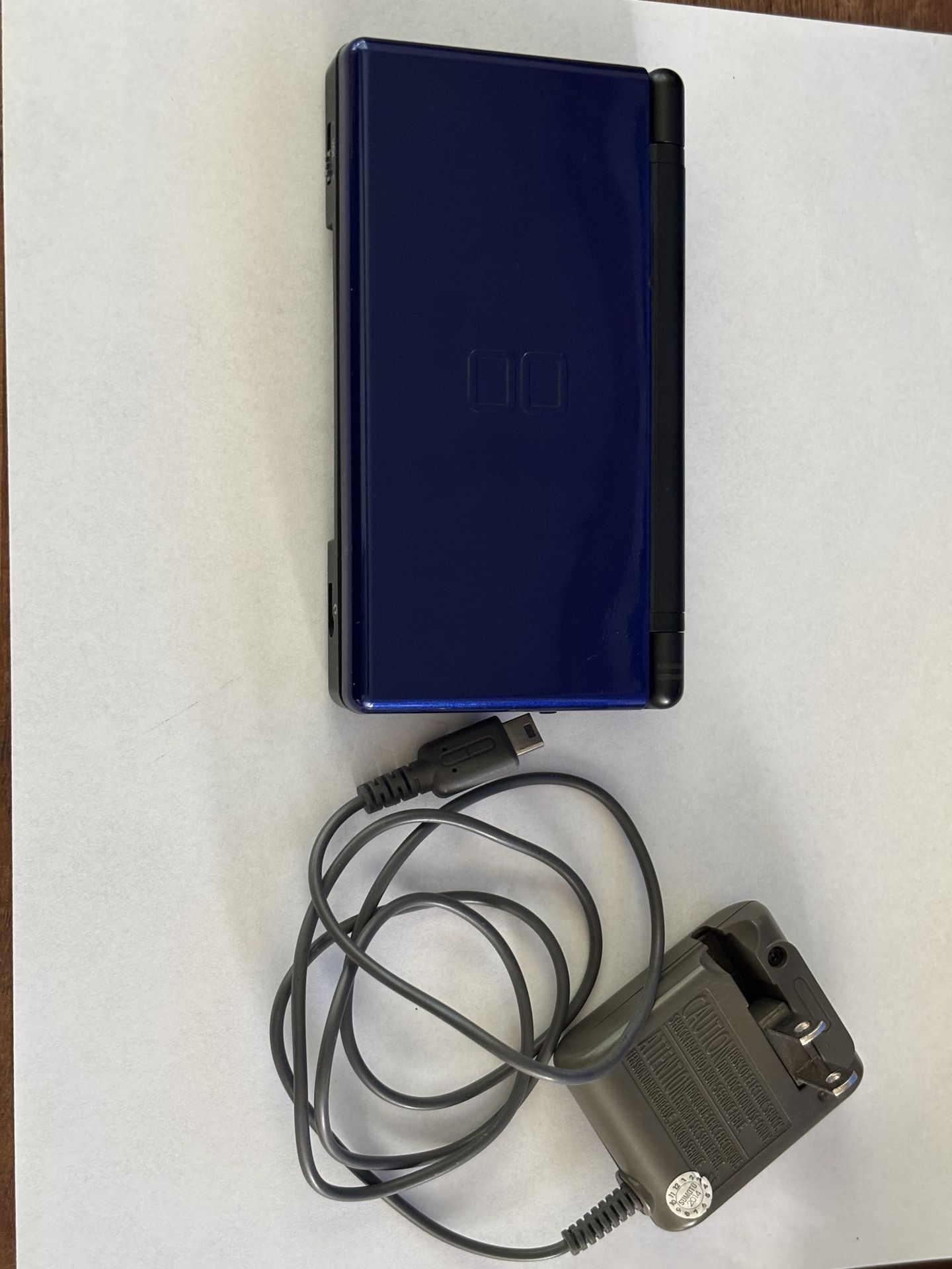 A Ds Lite Gameboy cobalt blue and black with charger and stylus. Tested thoroughly and works great. No light dim, and mildy used. Battery holds charge for 6hours continuous play.