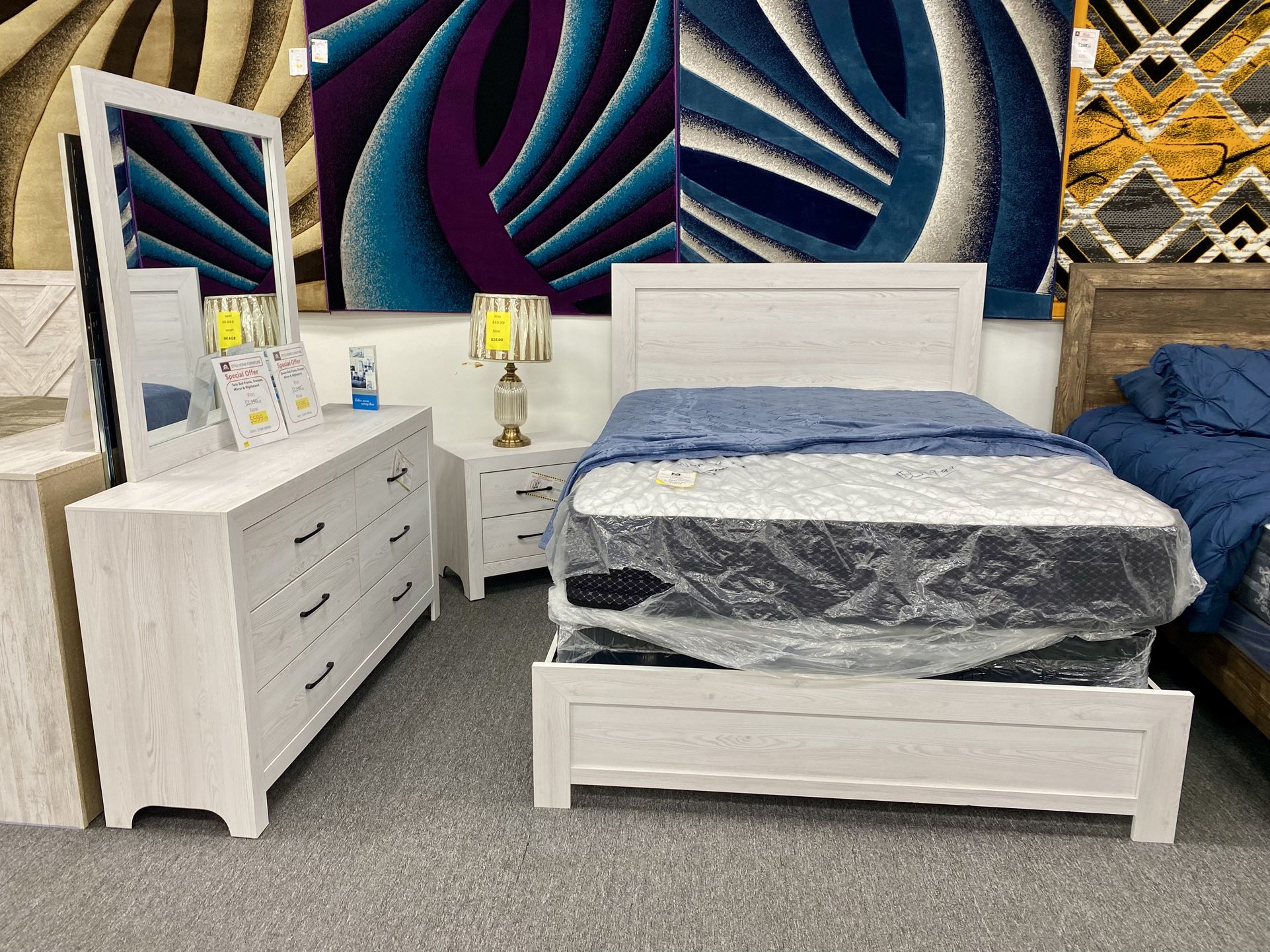 Queen size bedframe set includes dresser with mirror and nightstand $599 Style Home & Furniture 1000 30th St., NW Canton, OH 44709. More information (330)491-9907 We open 7 days a week Monday to Saturday From 9am to 8pm Sunday 10am to 6pm Financing available Pick up available Next day delivery Visit us www.stylehomefurniture.net