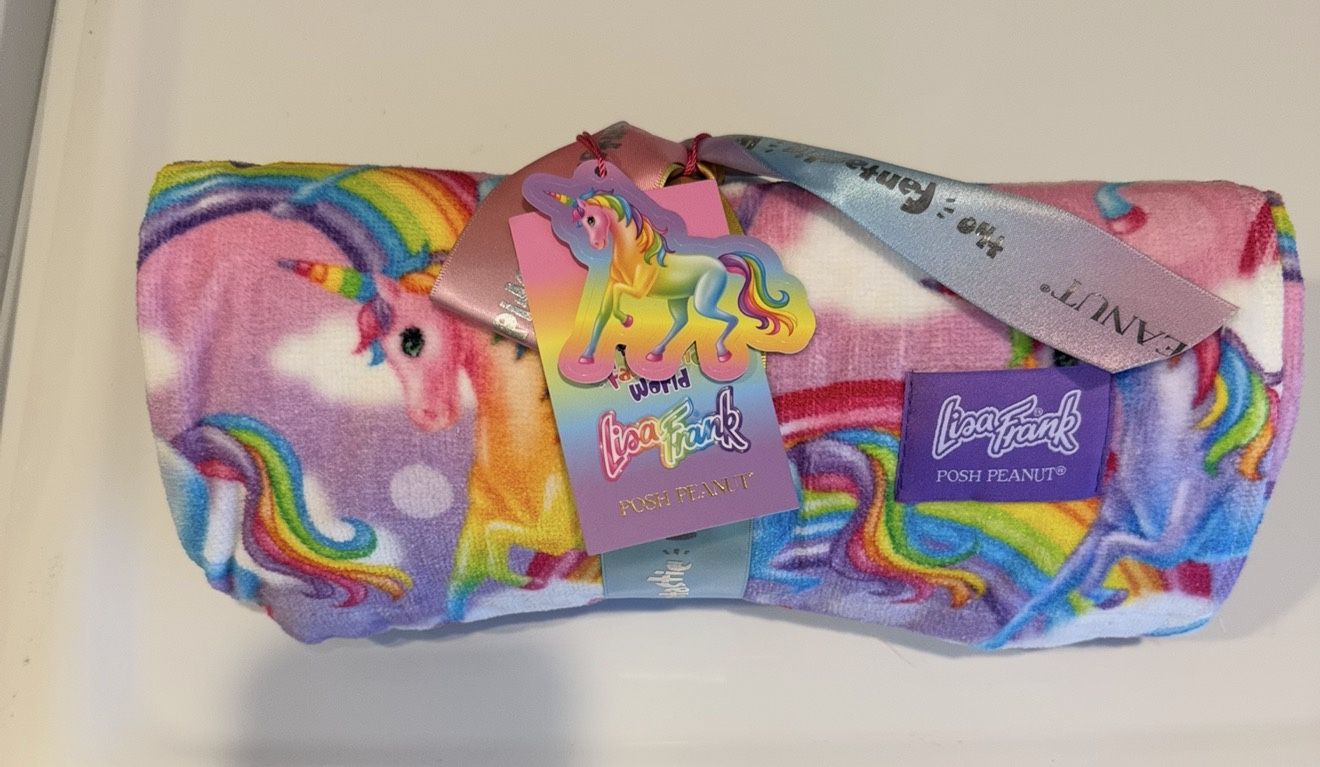 No longer sold Limited edition towel Lisa Frank unicorn Brand new with tags and unicorn sticker on tag Price is 45