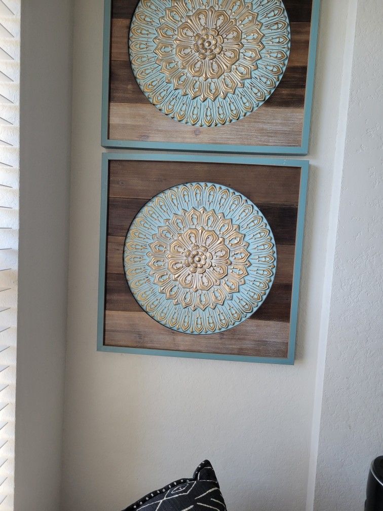 gold and blue decorative large framed. wall decor farmhouse and rustic look. very beautiful