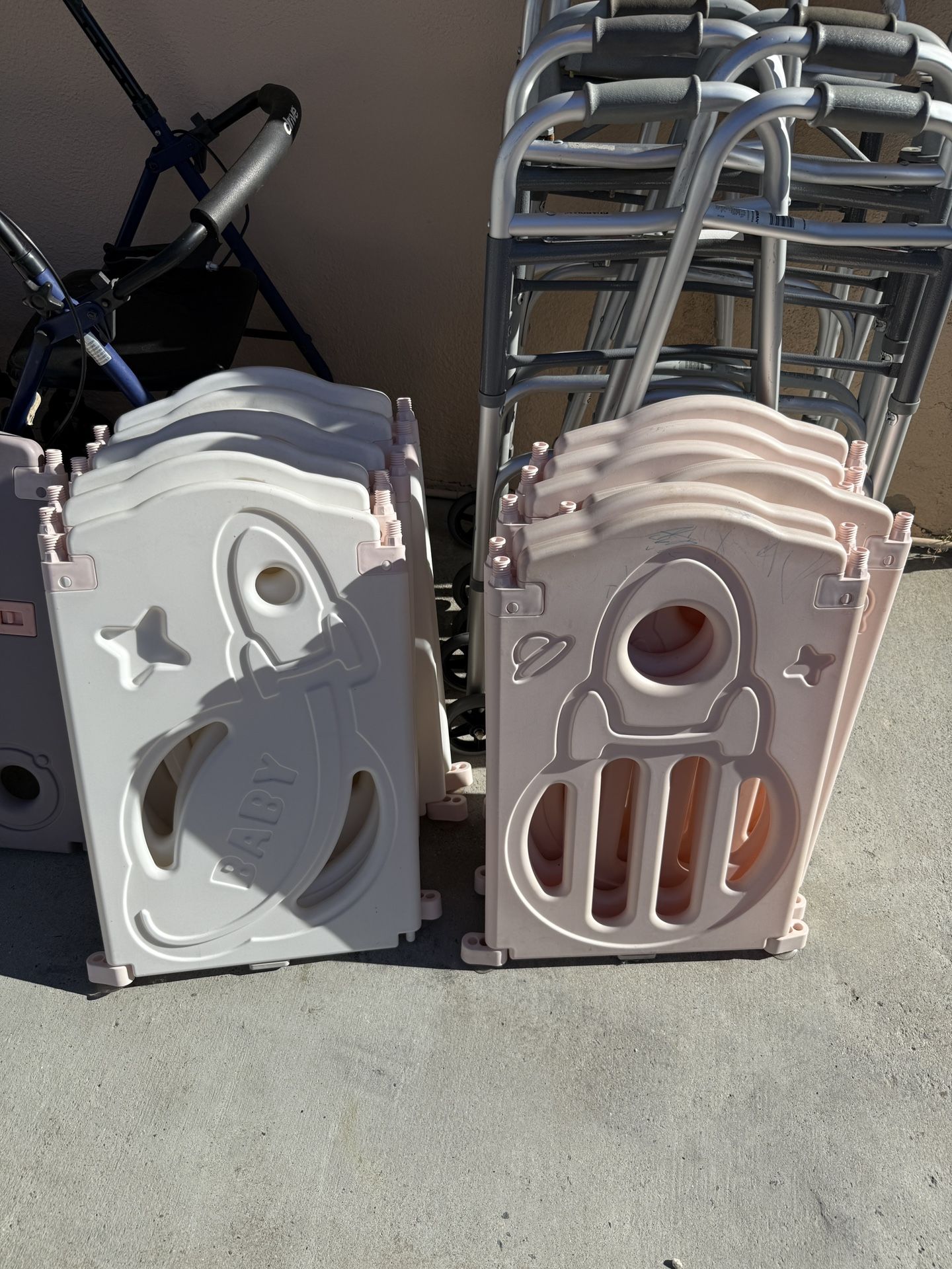14 panels including big front and back piece Light weight plastic with suction on bottom Pink and white excellent condition One does have crayon writing on it as shown