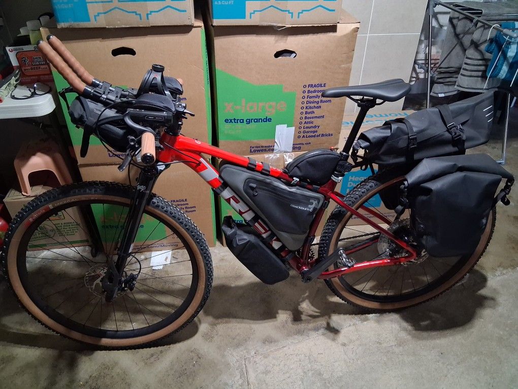 2023 trek procaliber 6 with Canondale lefty Ocho fork! Vittoria Mezcal tires with tailfin cycle bags! This ride will tackle anything from small weekend getaway bike packing trips to long distance ultra enduro rides like the tour divide! I did my best to copy the exact same setup as Lachlan Morton had when he tackled the tour divide! This bike is in mint condition and has only been ridden once! I would love to keep it but unfortunately due to financial circumstances I am selling it :( The bike will come with all bags and accessories seen in the photos! This is a $3,800 setup!