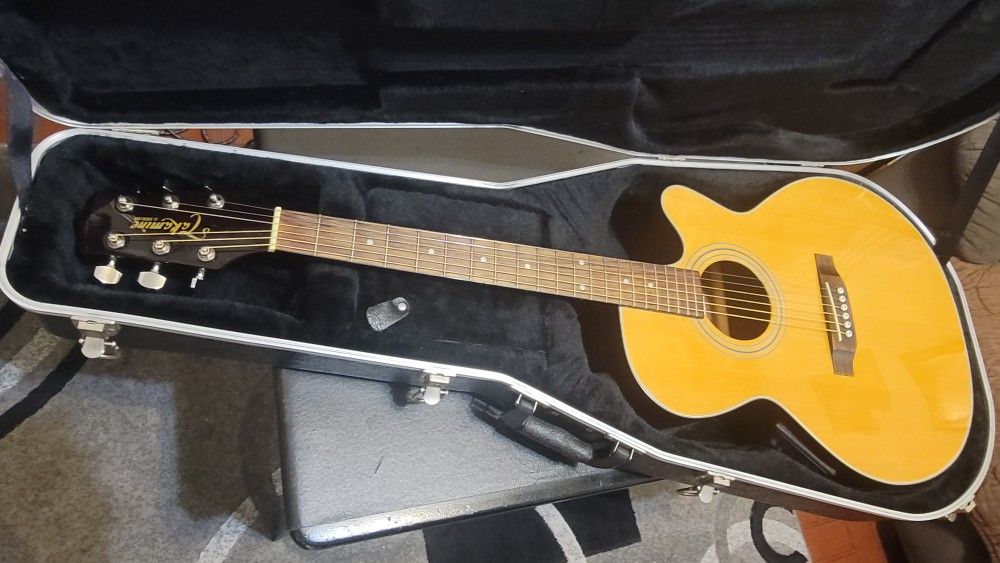 TAKAMINE G-SERIES ACOUSTIC ELECTRIC GUITAR MODEL EG540C MADE IN KOREA DREINAUGH NATURAL COLOR. Guitar is in decent condition very well kept always in the case, a couple of signs of used not even noticeable with the camera, specially by the edge of the mouth in the middle, nothing that affect the playability, guitar is all professional setup with low action straight neck not buzzing frets, also just replaced the brand new strings, this beautiful guitar sounds amazing and clean also she is really smooth and easy to play, guitar counts with electronics to connect to your amplifier for a better performance, guitar is good for beginners, middle, and professional guitar players, so guitar is ready to show up on the stage, guitar is coming with hard case included, you are getting guitar and case only, thanks for looking (NO TRADES, NO SHIPPING SORRY)