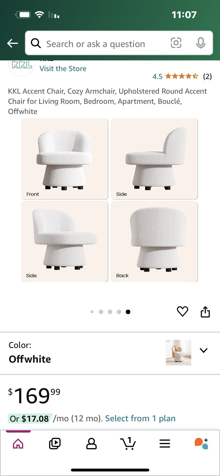 KKL Accent Chair, Cozy Armchair, Upholstered Round Accent Chair for Living Room, Bedroom, Apartment, Bouclé,