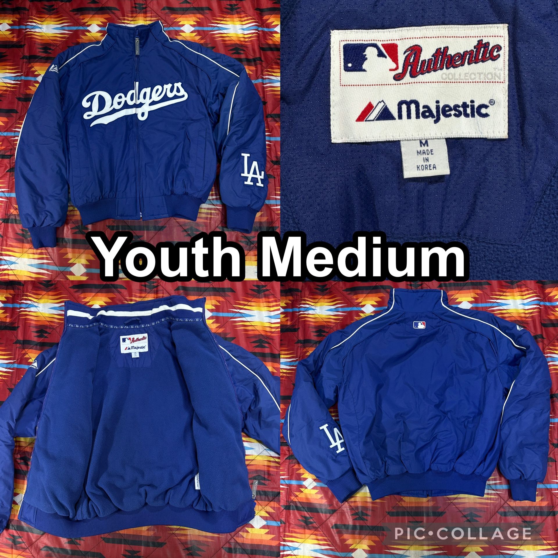 Vintage Los Angeles Dodgers Majestic Dugout Blue Jacket Bomber Youth Sz Medium