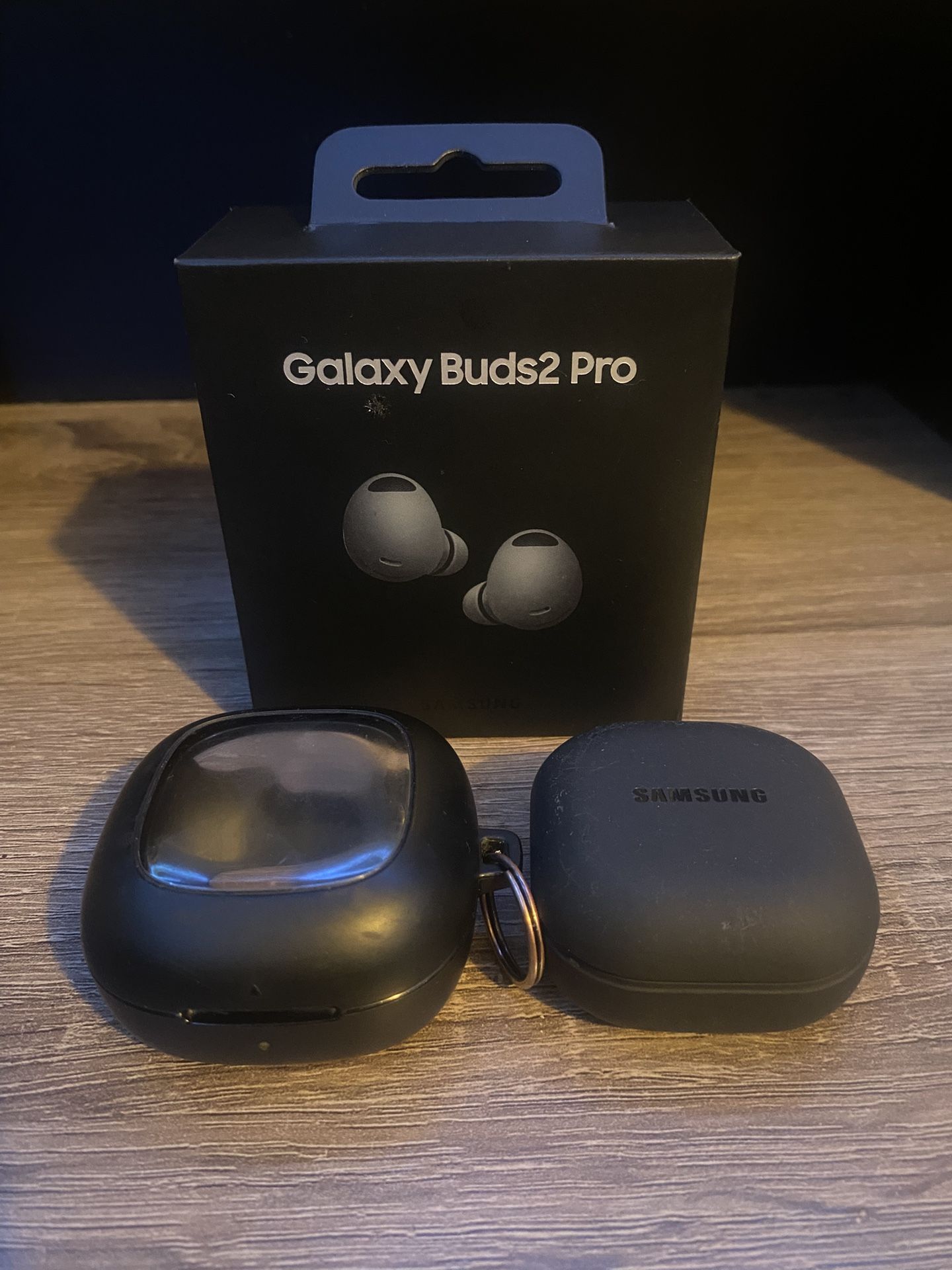 Galaxy Buds2 Pro with the original box and case comes with extra earbud pieces. Everything works great. Light cosmetic wear but fully functional. Features ANC, great sound, and wireless charging. Or best offer