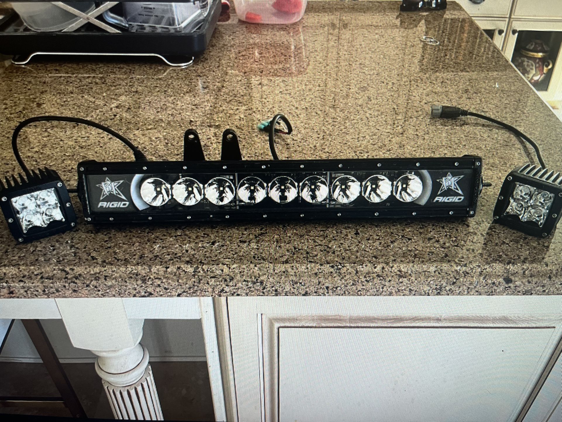 Rigid LED 20” Light bar and two Additional Side Led Lights.