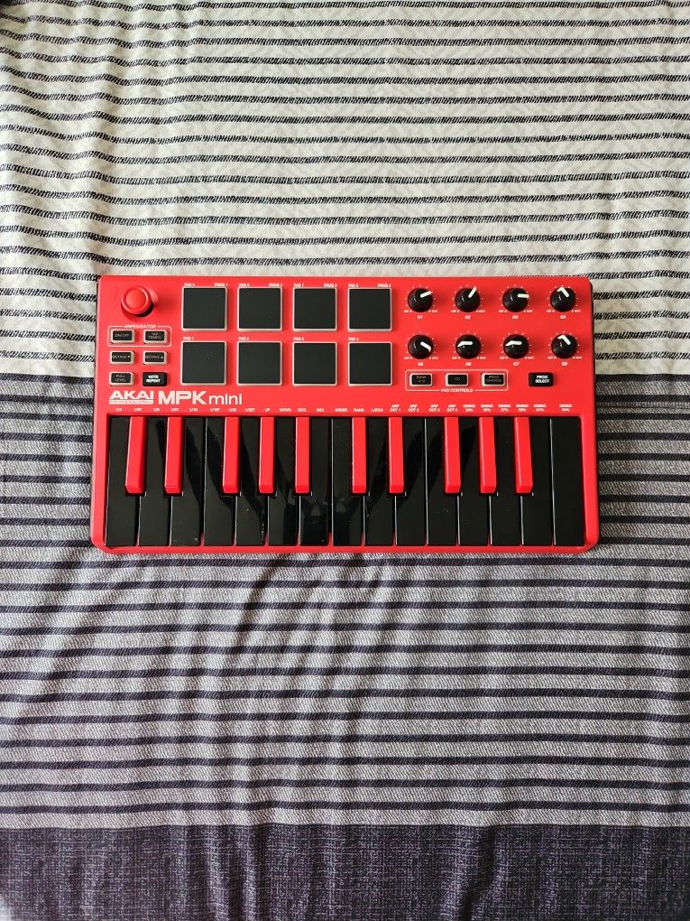 Works perfectly. Great beginner MIDI controller for making beats or music production. • 25 mini keys • Drum pads • Knobs for sound control • USB powered Compatible with FL Studio, Ableton, Logic, GarageBand, and more.