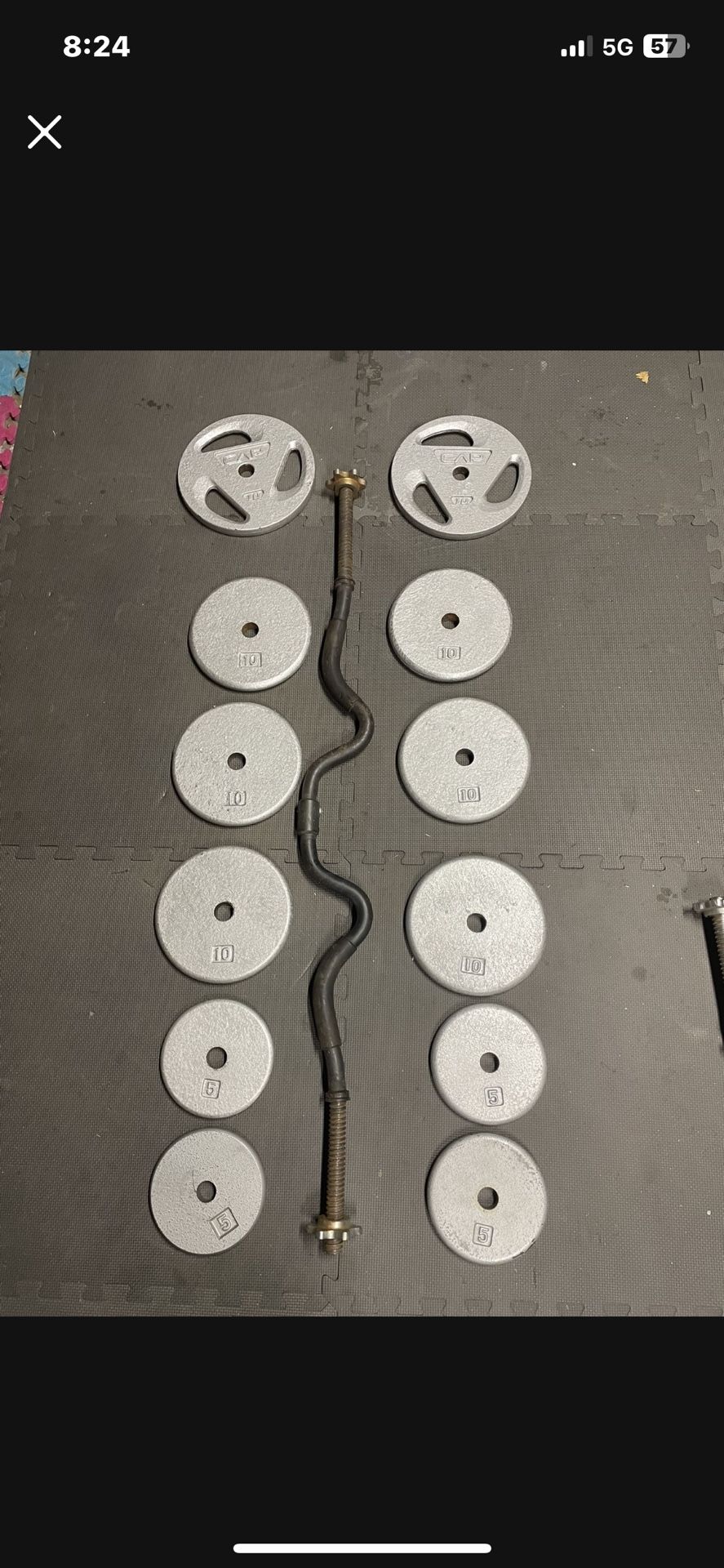 Curl bar. 8——-10 pounds 4——-5 pounds. (100 pounds). 70 dollars