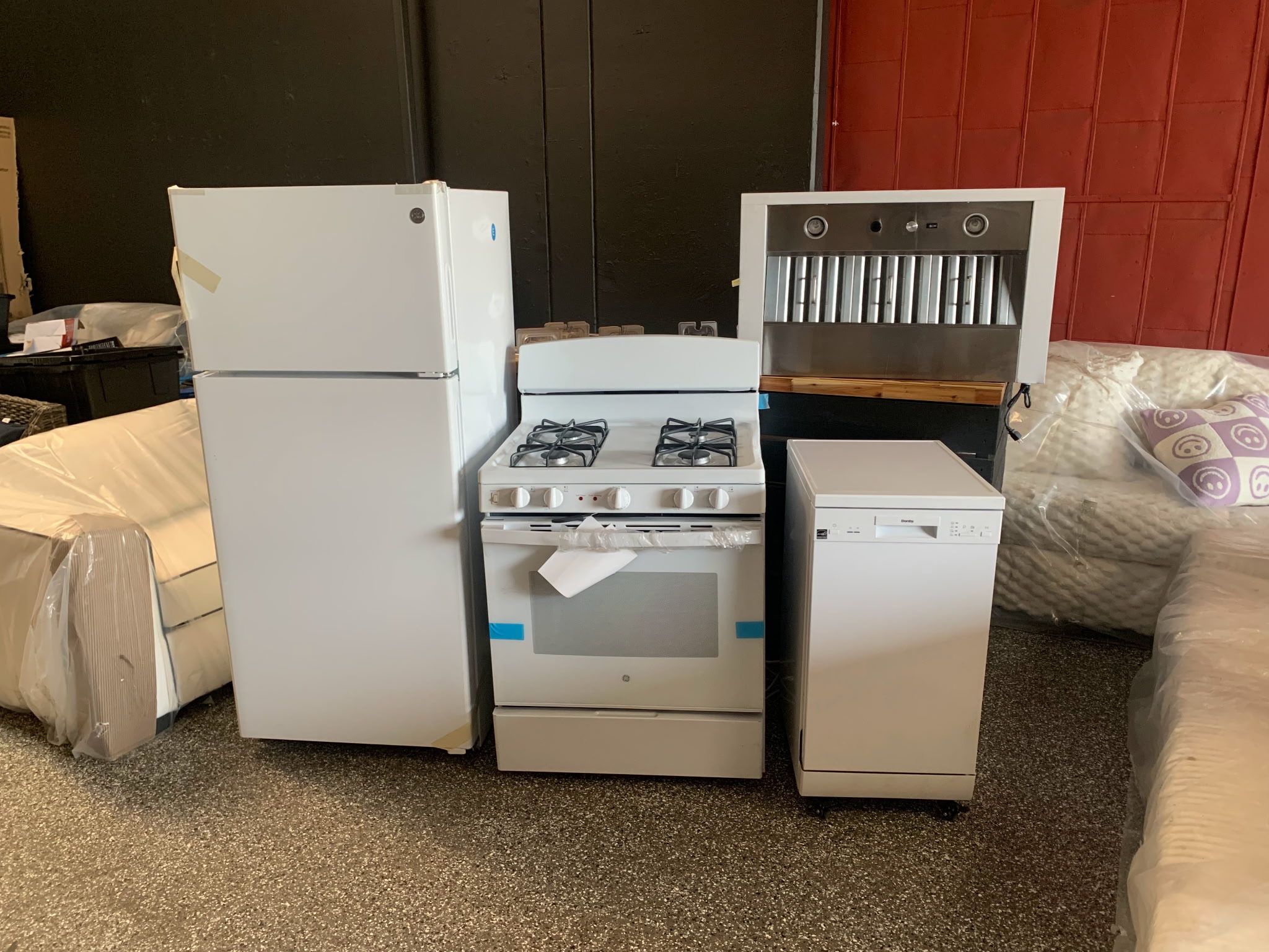 White kitchen set 18" white dishwasher 30" white gas stove 30" white hood 30" white top freezer fridge We deliver Pick up Costa mesa