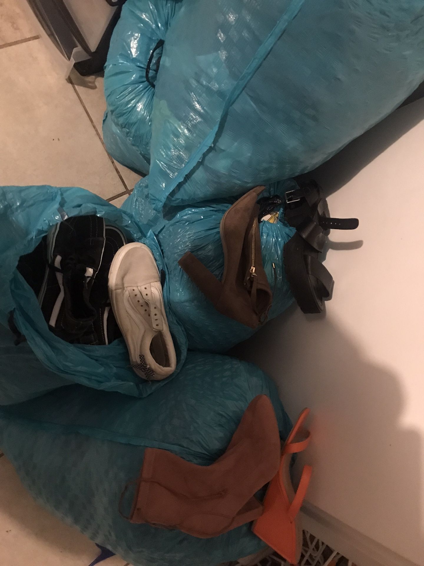 I have Two huge bags full womens clothes sizes xl and up comes with lots of shoes and clothes including rompers pants and shorts skirts cute dresses ext.. selling both bags together also included the boots and sandols and two pairs of vans