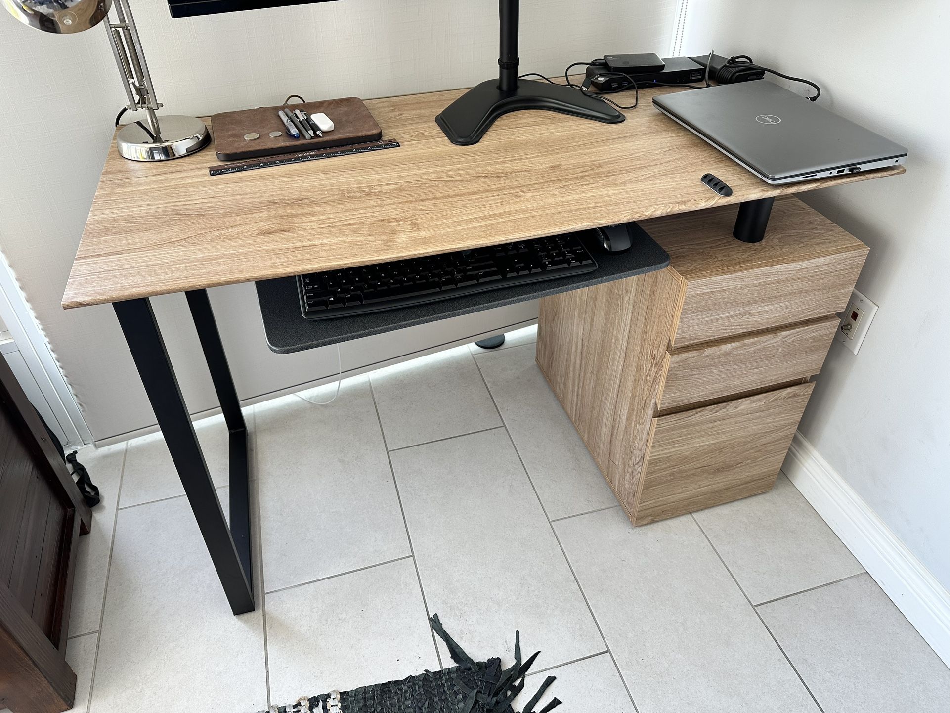 Dimensions: 30.25” x 23.5” x 47.25” MDF, Manufactured wood Color: pine Style: contemporary Cable and cord organizer INCLUDED Keyboard tray NOT included