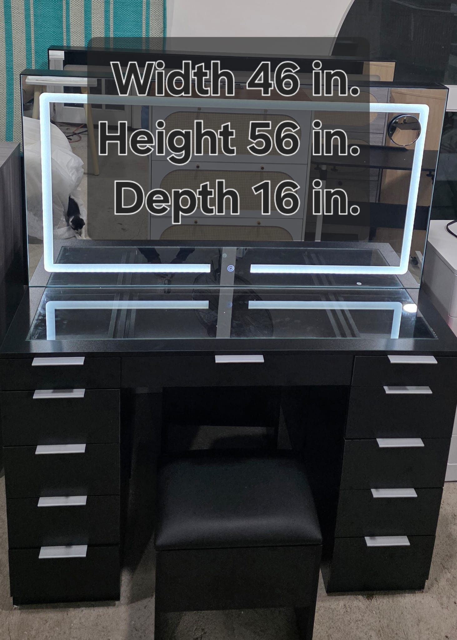 PICK UP IN VAN NUYS BRAND NEW ππ Upgrade your space with this gorgeous black modern vanity β the color makes it look luxurious, high-end, and clean. Perfect for makeup lovers who want a vanity that looks expensive and stays looking new. βοΈ Large LED mirror with built-in lighting for flawless makeup βοΈ 11 spacious drawers β perfect for organizing skincare, hair tools, and beauty essentials βοΈ Comes with a matching padded stool with storage βοΈ Sturdy, modern, and easy to clean βοΈ Black finish makes it look elegant and hides makeup stains better than white β¨ Price: $165 π¦ New in box π Pick up in van nuys π Delivery available in area the van nuys π³ Zelle accepted and cash I have several available! Check my profile for more great deals and furniture finds! π€