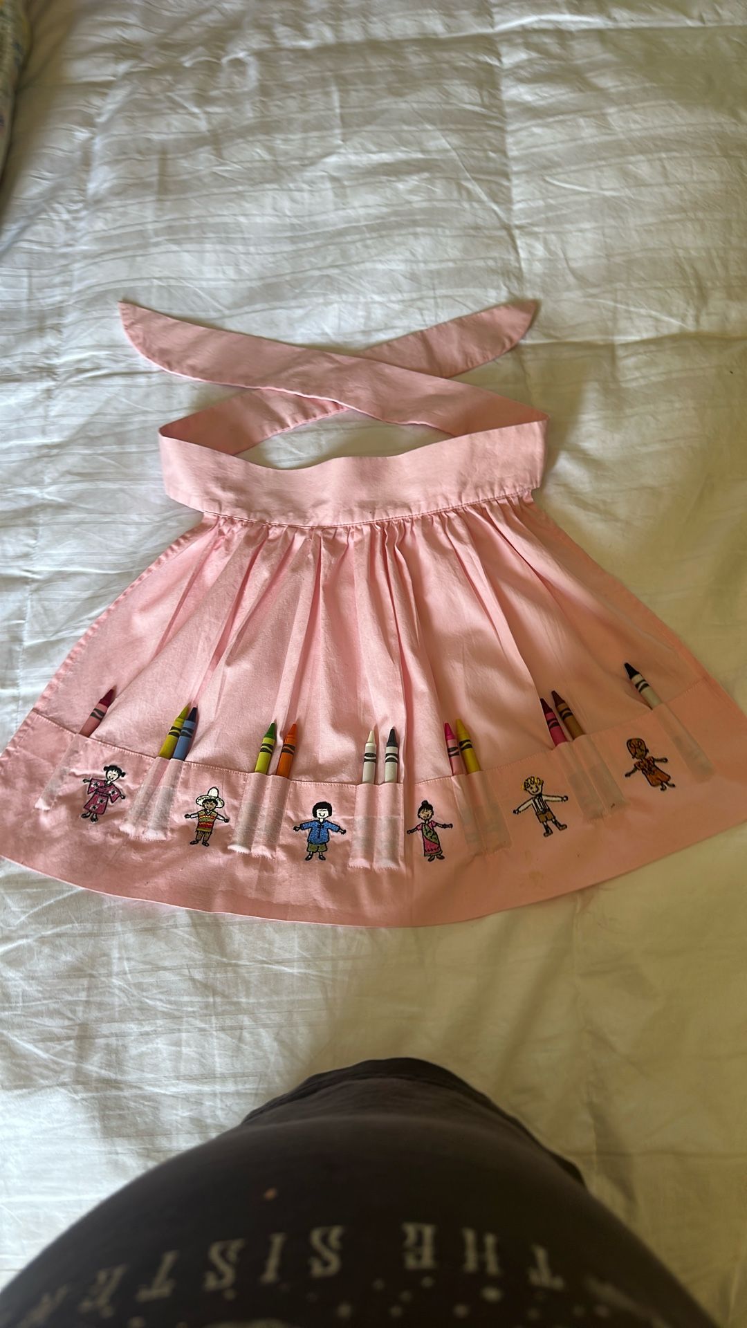 Used. Holds 12 crayons. See pictures of children embroidered. Ages 3-6 for fitting.