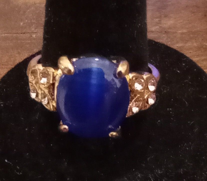 Gold Toned pink and blue cats eye rings. Pink one is a size 6 3/4. The Blue one is a size 7 3/4